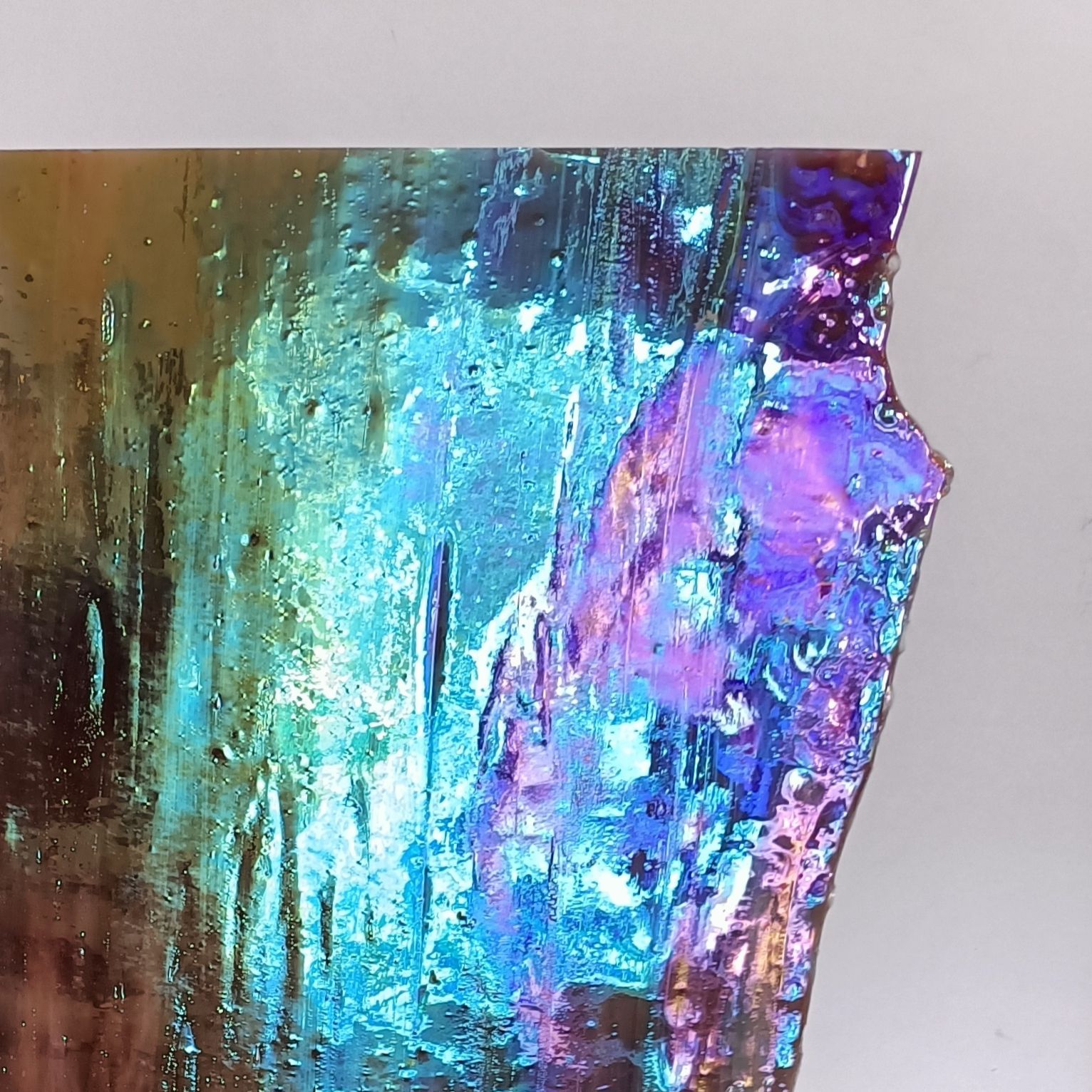 These sheets feature an iridized coating on the front surface, creating a beautiful, shifting finish that catches the light with flashes of colour. Each piece has unique patterns and textures, adding depth and movement to your work.